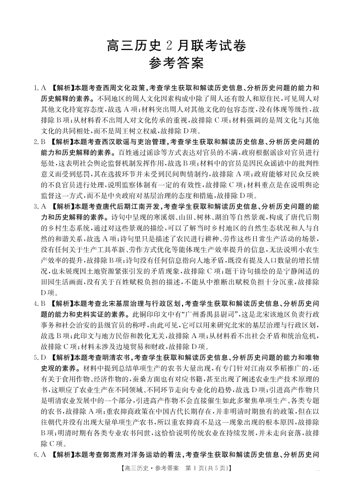 福建省宁德市区域高中2024-2025年下学期2月高三开学考试历史答案