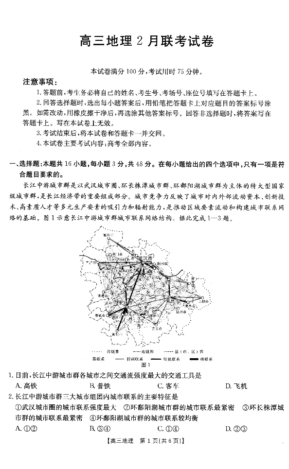 福建省宁德市区域高中2024-2025年下学期2月高三开学考试地理
