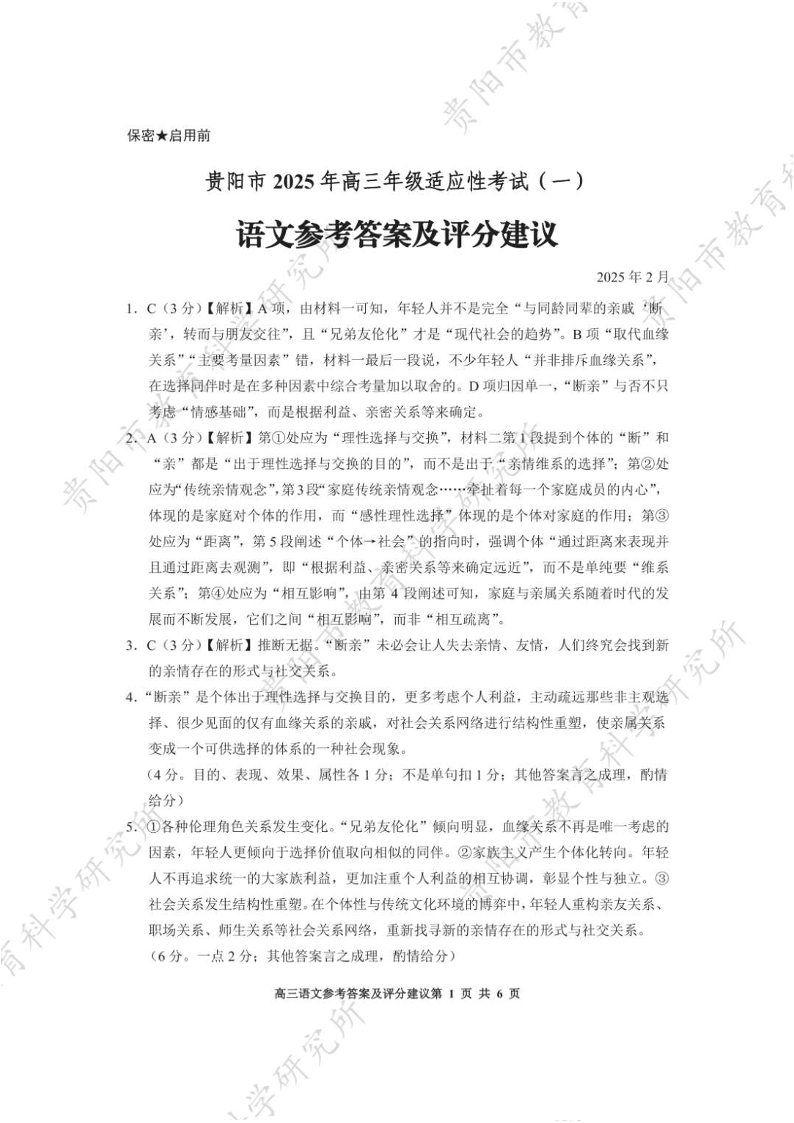 贵州省跨区域联考2024-2025学年下学期高三适应性考试(一)语文答案