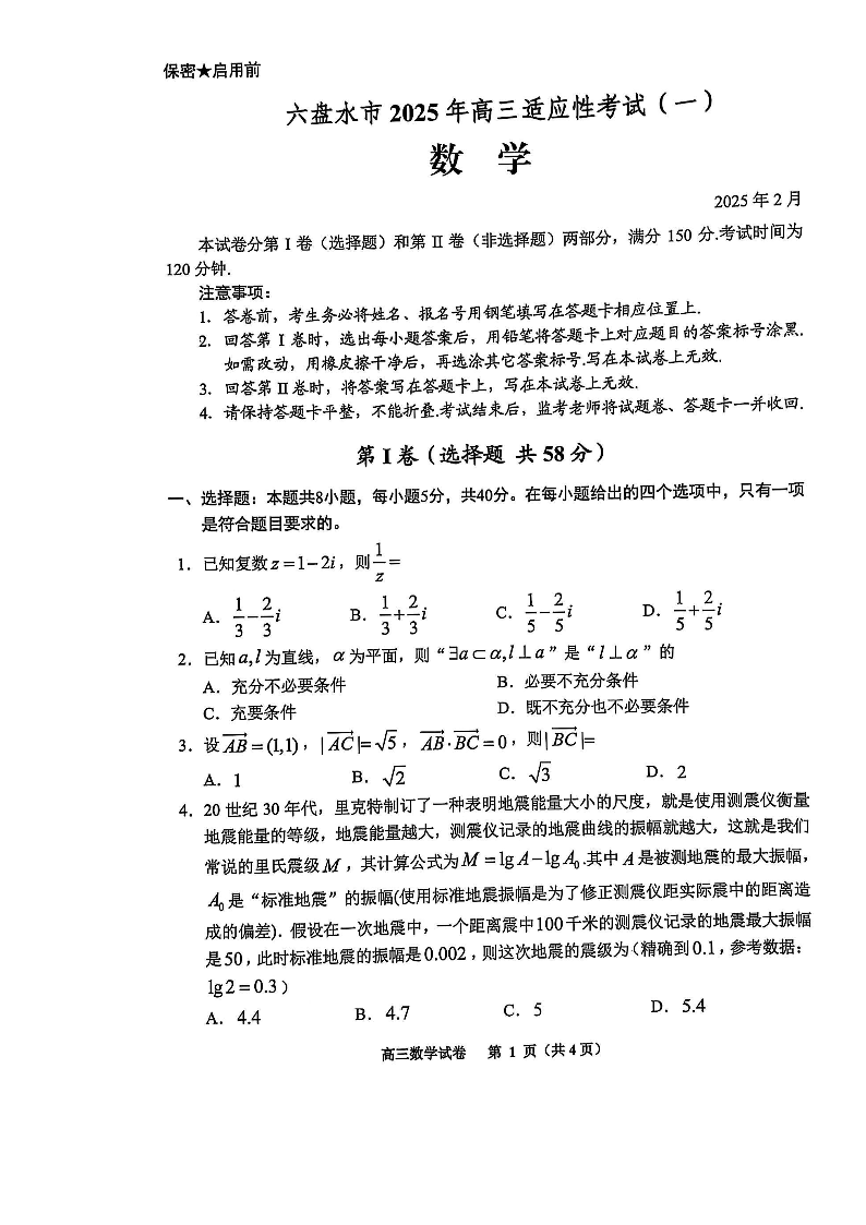 贵州省跨区域联考2024-2025学年下学期高三适应性考试(一)数学