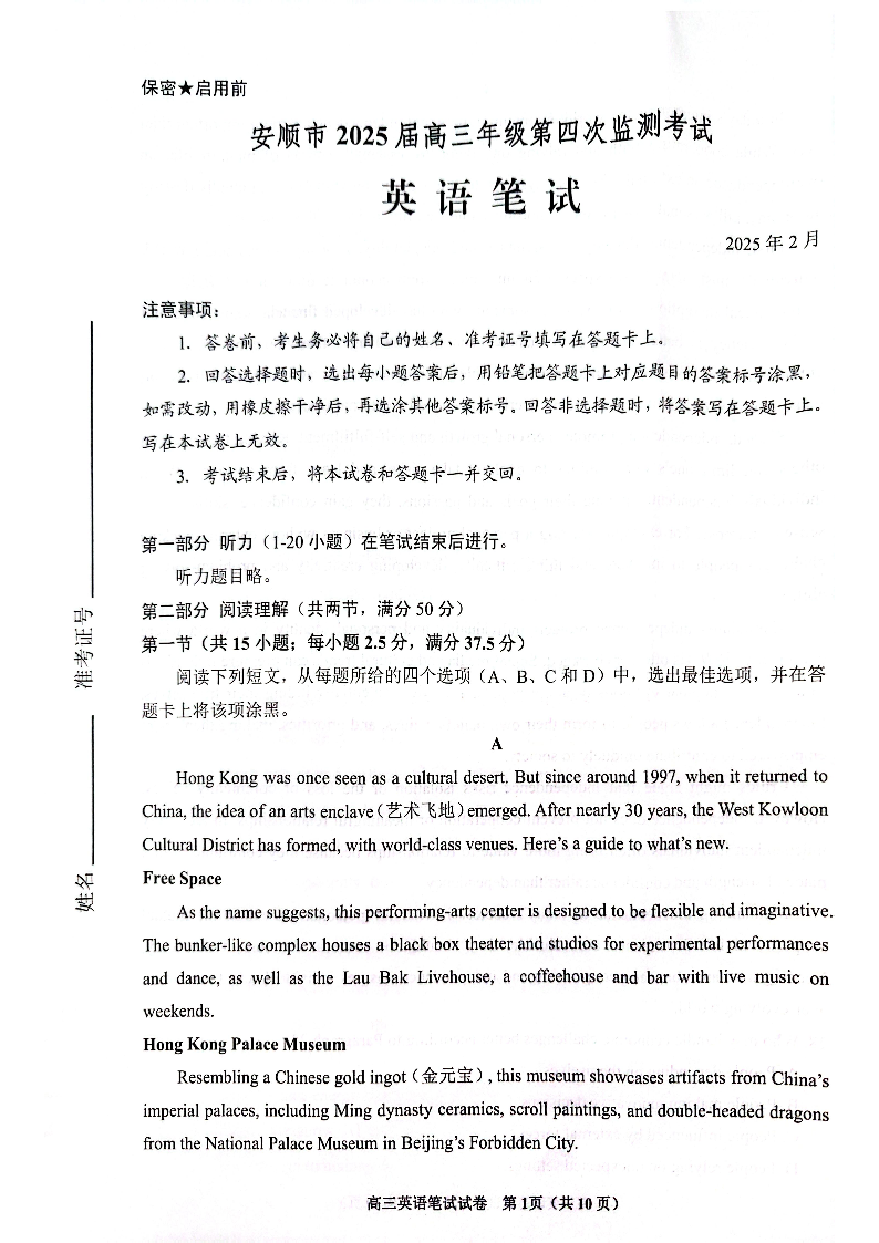 贵州省跨区域联考2024-2025学年下学期高三适应性考试(一)英语