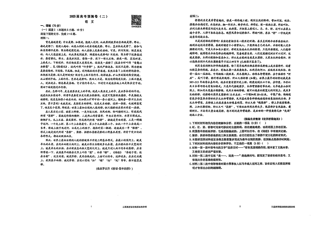陕西省三重教育2024-2025学年下学期高考预测卷(二)语文