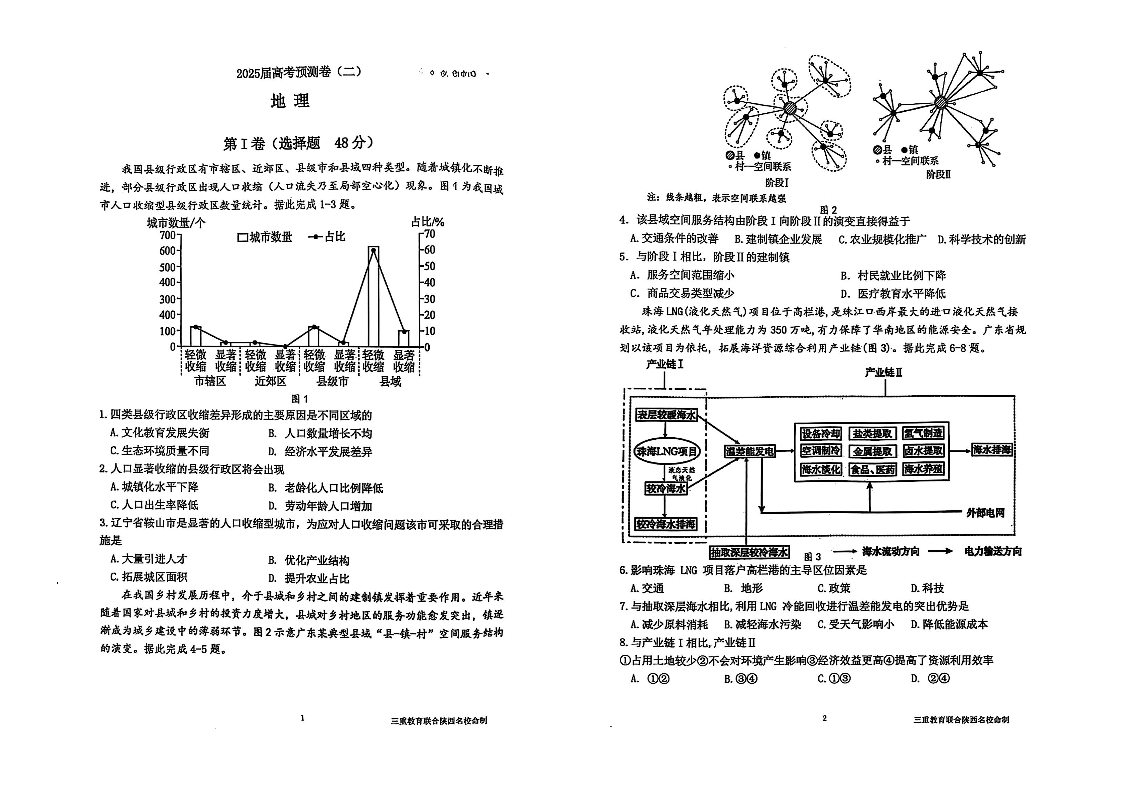 陕西省三重教育2024-2025学年下学期高考预测卷(二)地理