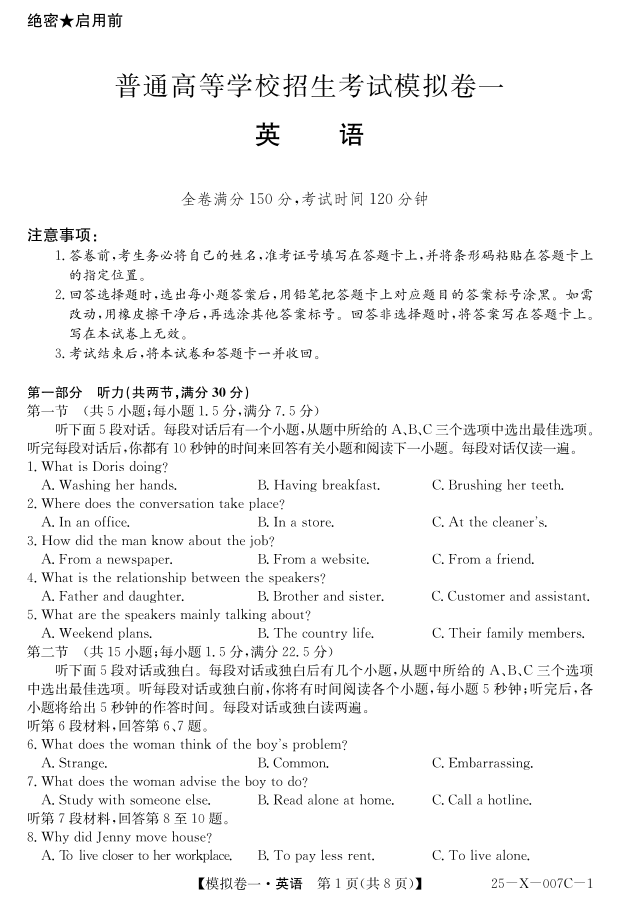河南省新高中创新联盟2024-2025学年下学期高三模拟卷一英语
