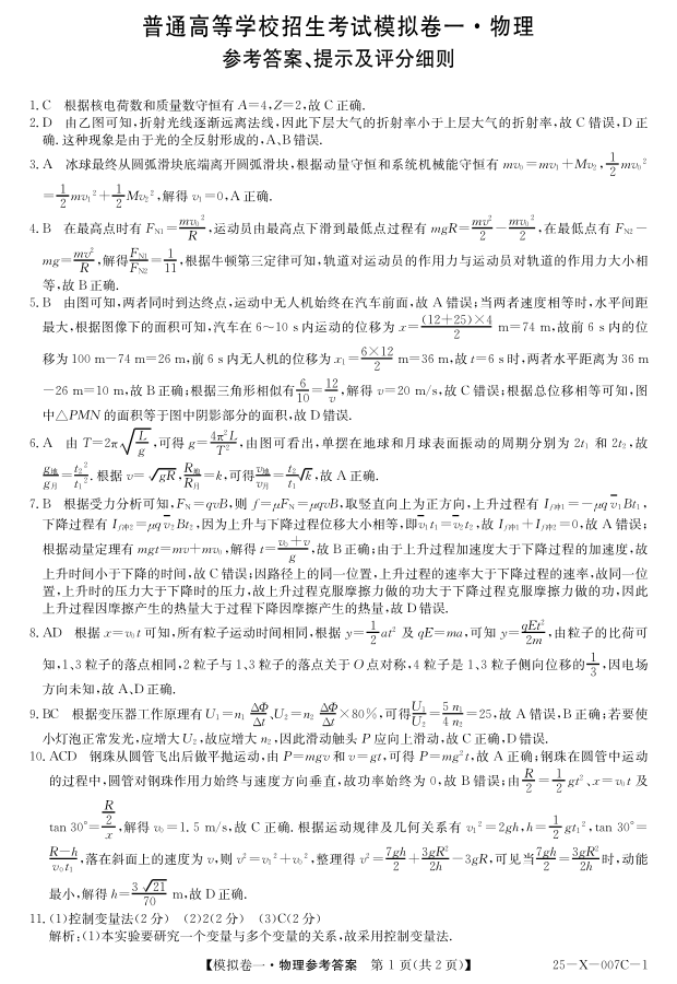 河南省新高中创新联盟2024-2025学年下学期高三模拟卷一物理答案