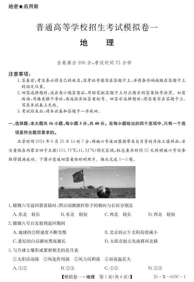 河南省新高中创新联盟2024-2025学年下学期高三模拟卷一地理