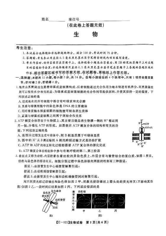 江西省九江市十校联考2024-2025学年下学期2月高三月考生物+答案