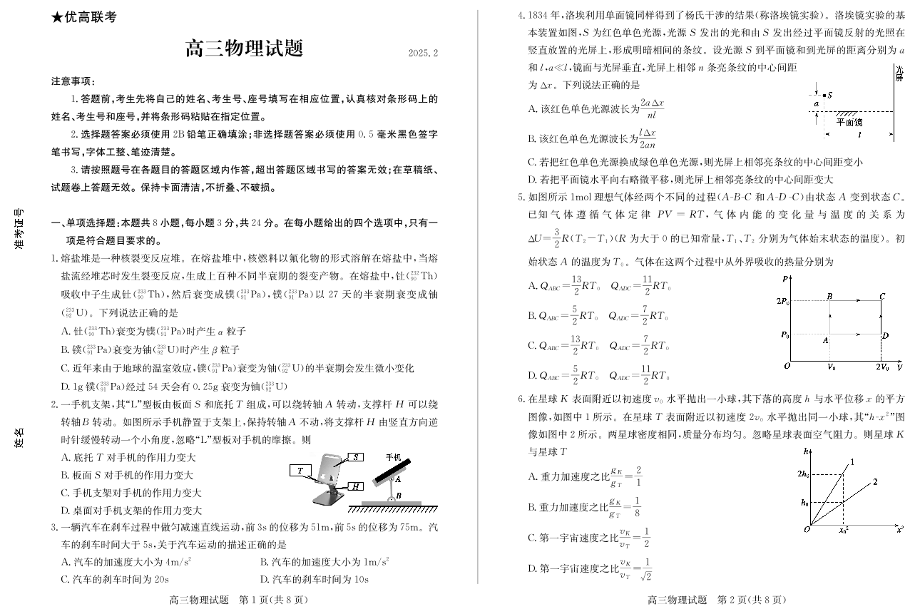 山东省德州市2024-2025学年高三下学期开学考试物理