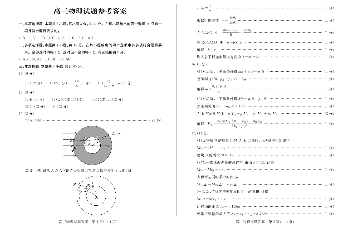 山东省德州市2024-2025学年高三下学期开学考试物理答案
