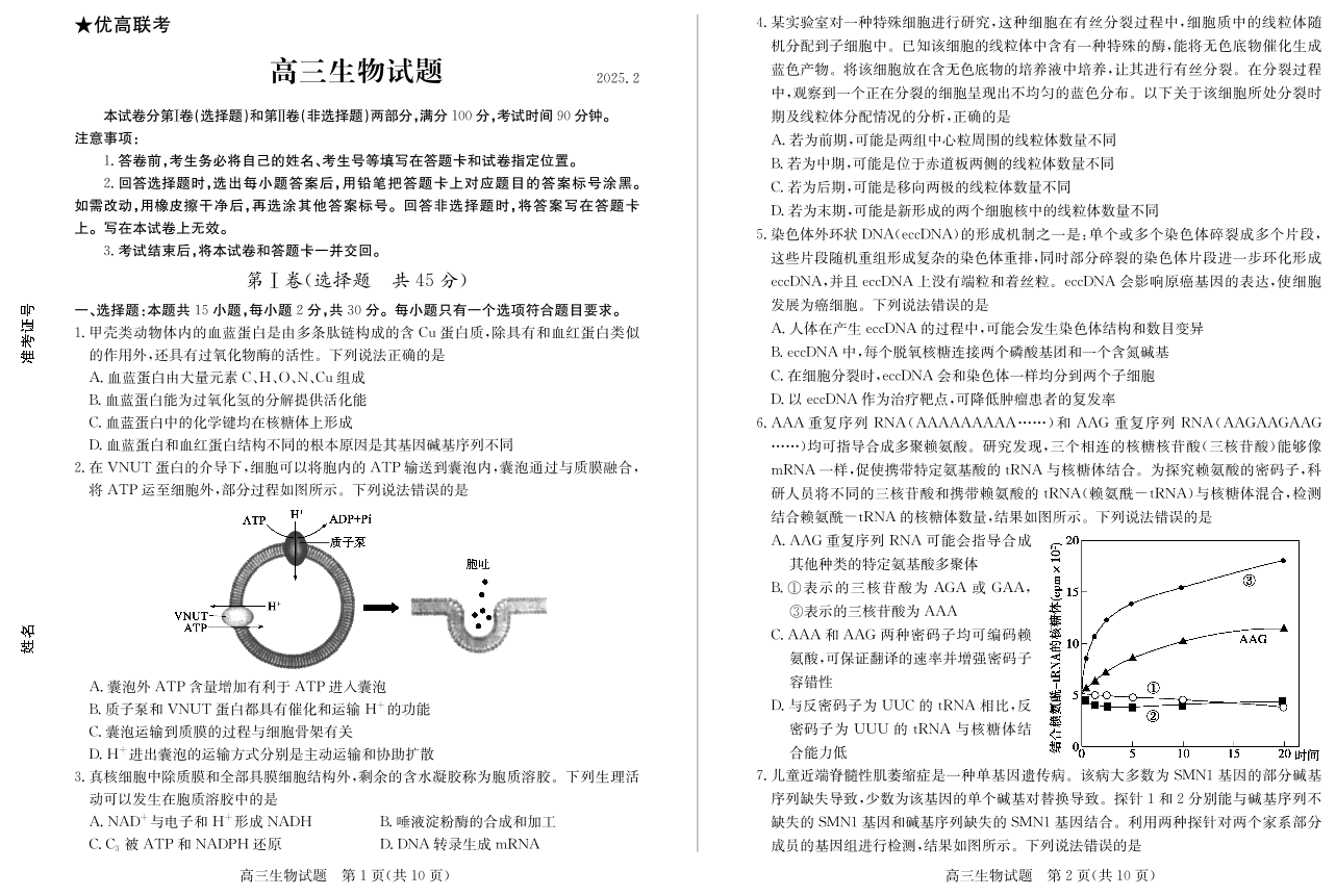 山东省德州市2024-2025学年高三下学期开学考试生物