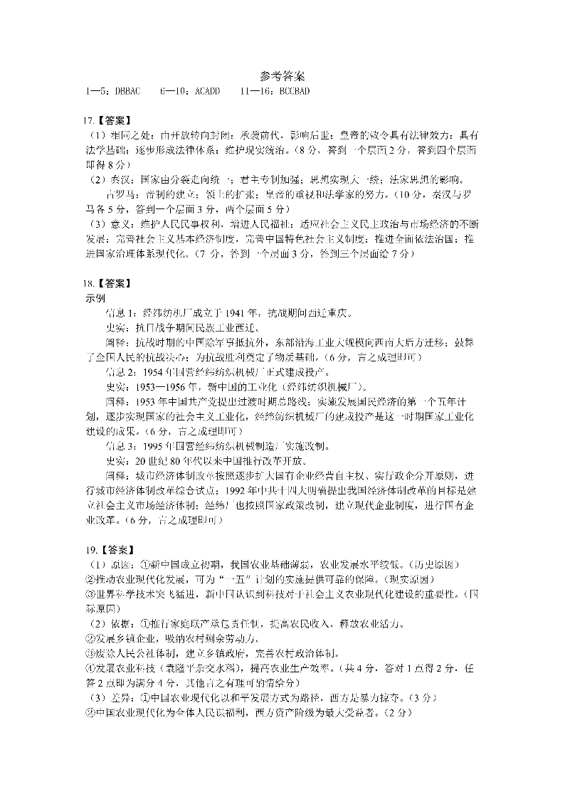 四川省成都市第七中学2024-2025学年高三下学期2月入学考试历史答案