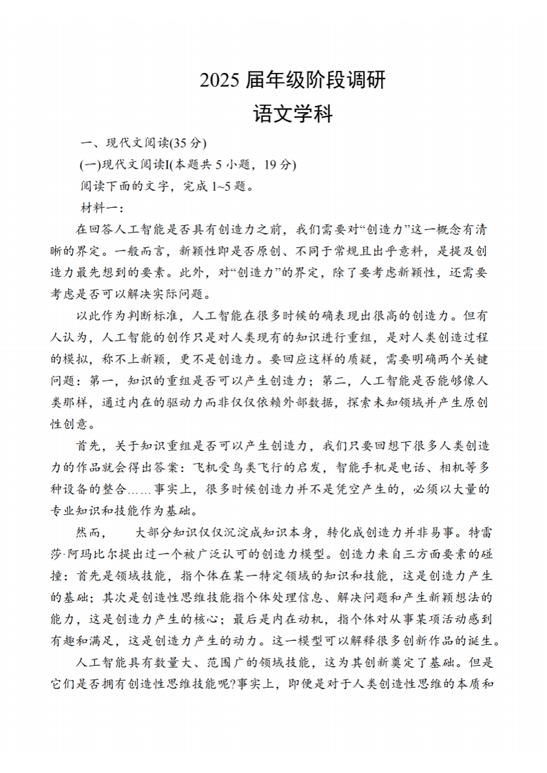 江苏省G4名校联考2024-2025学年下学期2月高三联考语文