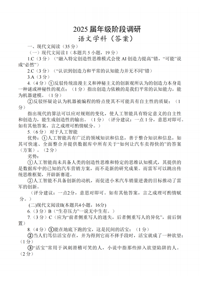 江苏省G4名校联考2024-2025学年下学期2月高三联考语文答案