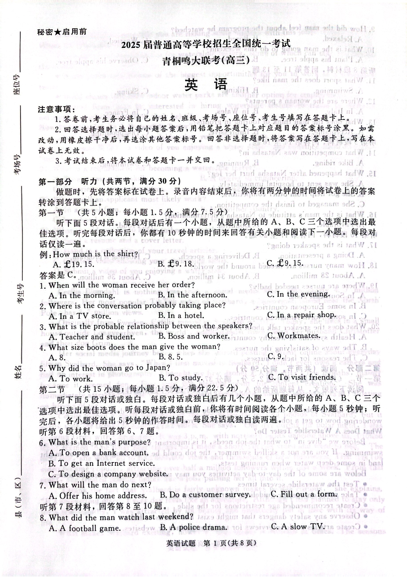 河南省部分高中2024-2025学年下学期2月高三联考英语