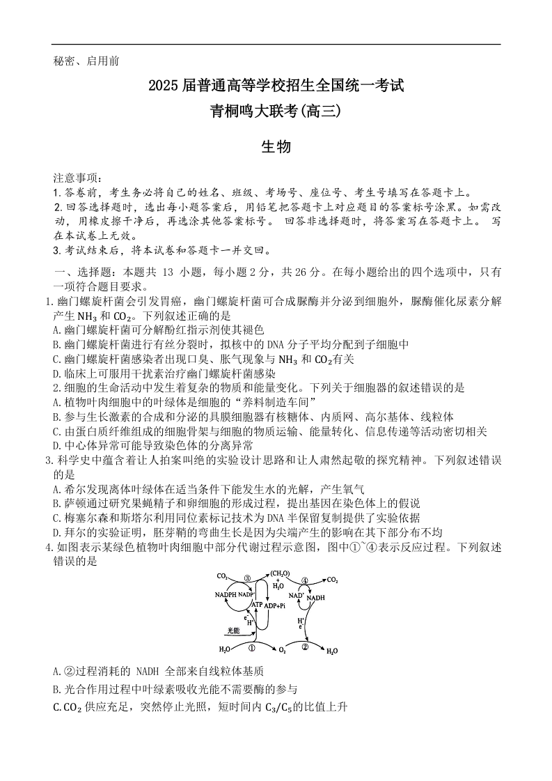 河南省部分高中2024-2025学年下学期2月高三联考生物