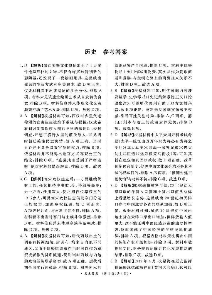 河南省部分高中2024-2025学年下学期2月高三联考历史答案