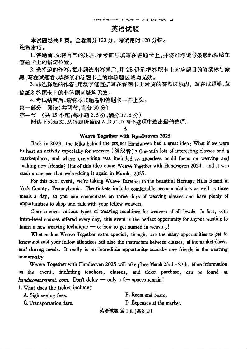 广东省区域高中2024-2025学年下学期高三2月高三联考英语+答案