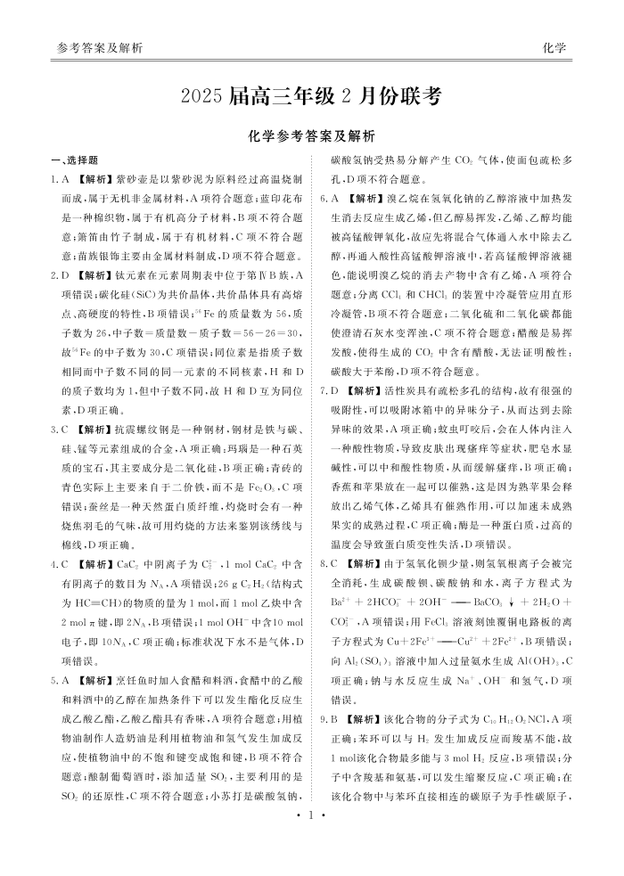 广东省区域高中2024-2025学年下学期高三2月高三联考化学答案