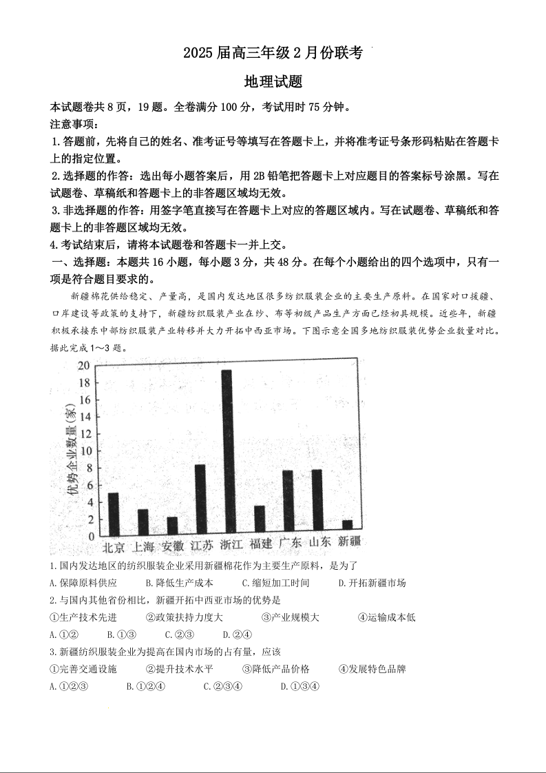 广东省区域高中2024-2025学年下学期高三2月高三联考地理+答案