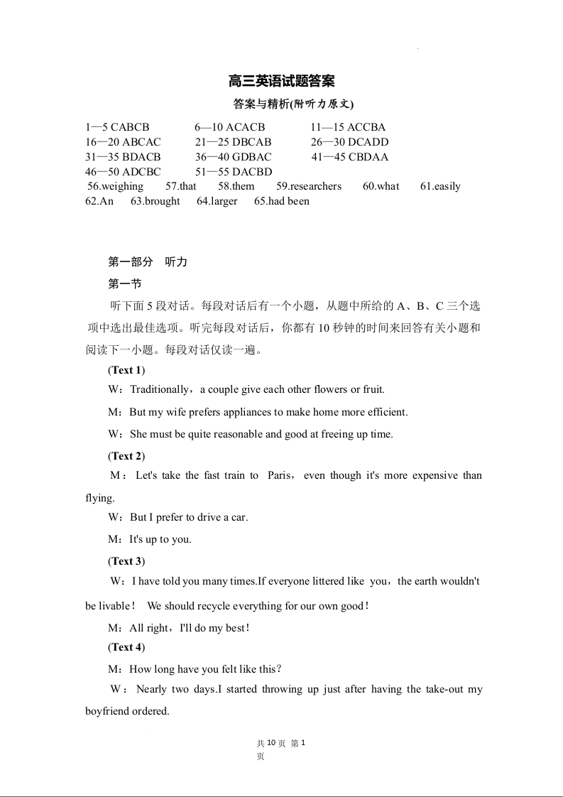 湖北省随州市区域2024-2025学年下学期2月高三月考英语答案