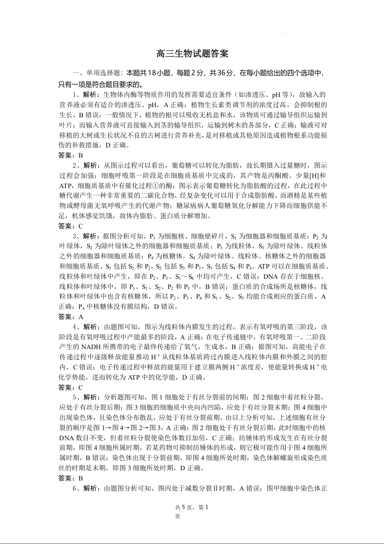 湖北省随州市区域2024-2025学年下学期2月高三月考生物答案