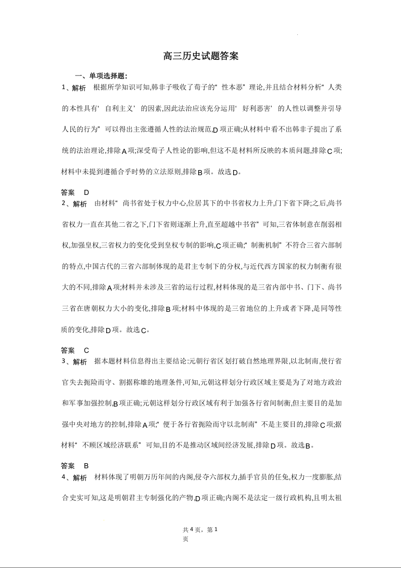 湖北省随州市区域2024-2025学年下学期2月高三月考历史答案