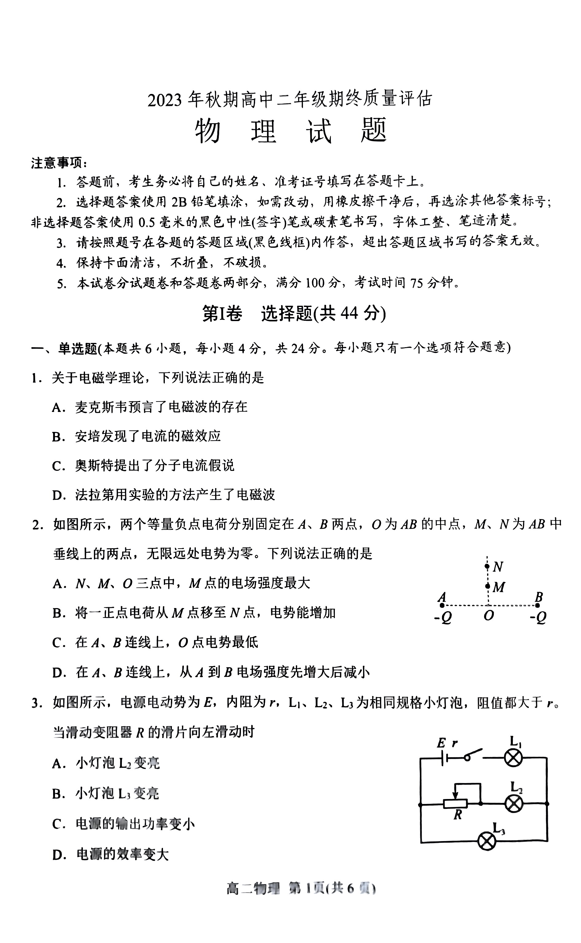 河南省南阳市2023-2024学年高二上学期期末考试物理