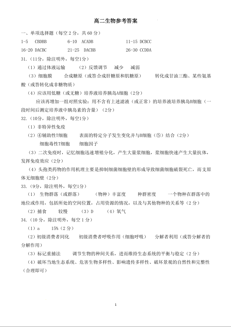 河南省南阳市2023-2024学年高二上学期期末考试生物答案
