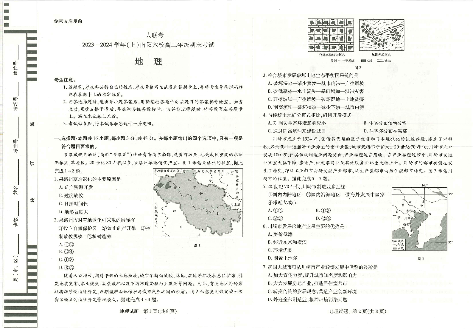 河南省南阳市六校2023-2024学年高二上学期1月期末考试地理