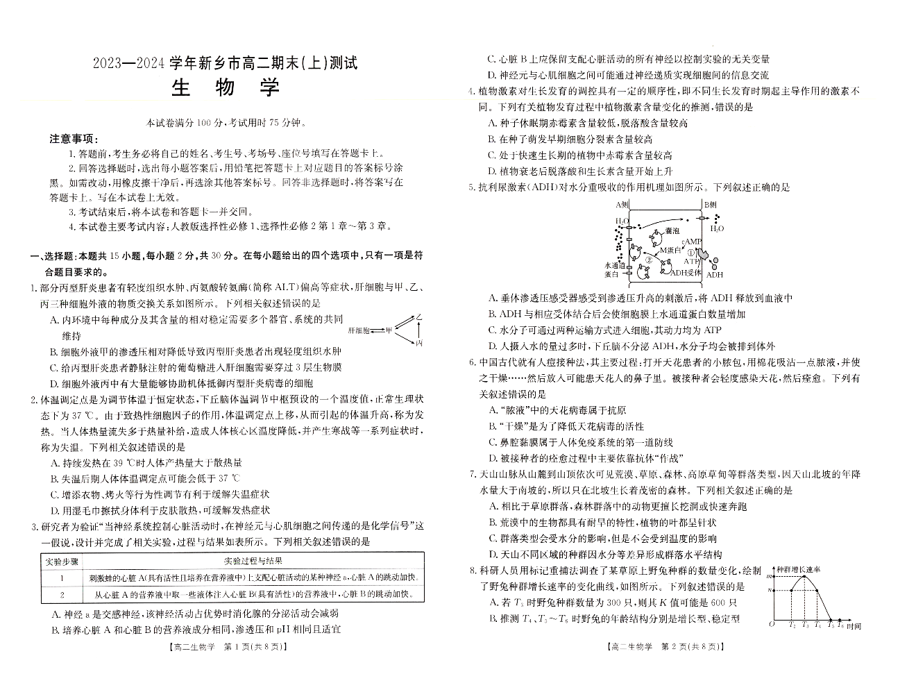 河南省新乡市2023-2024学年高二上学期1月期末测试生物