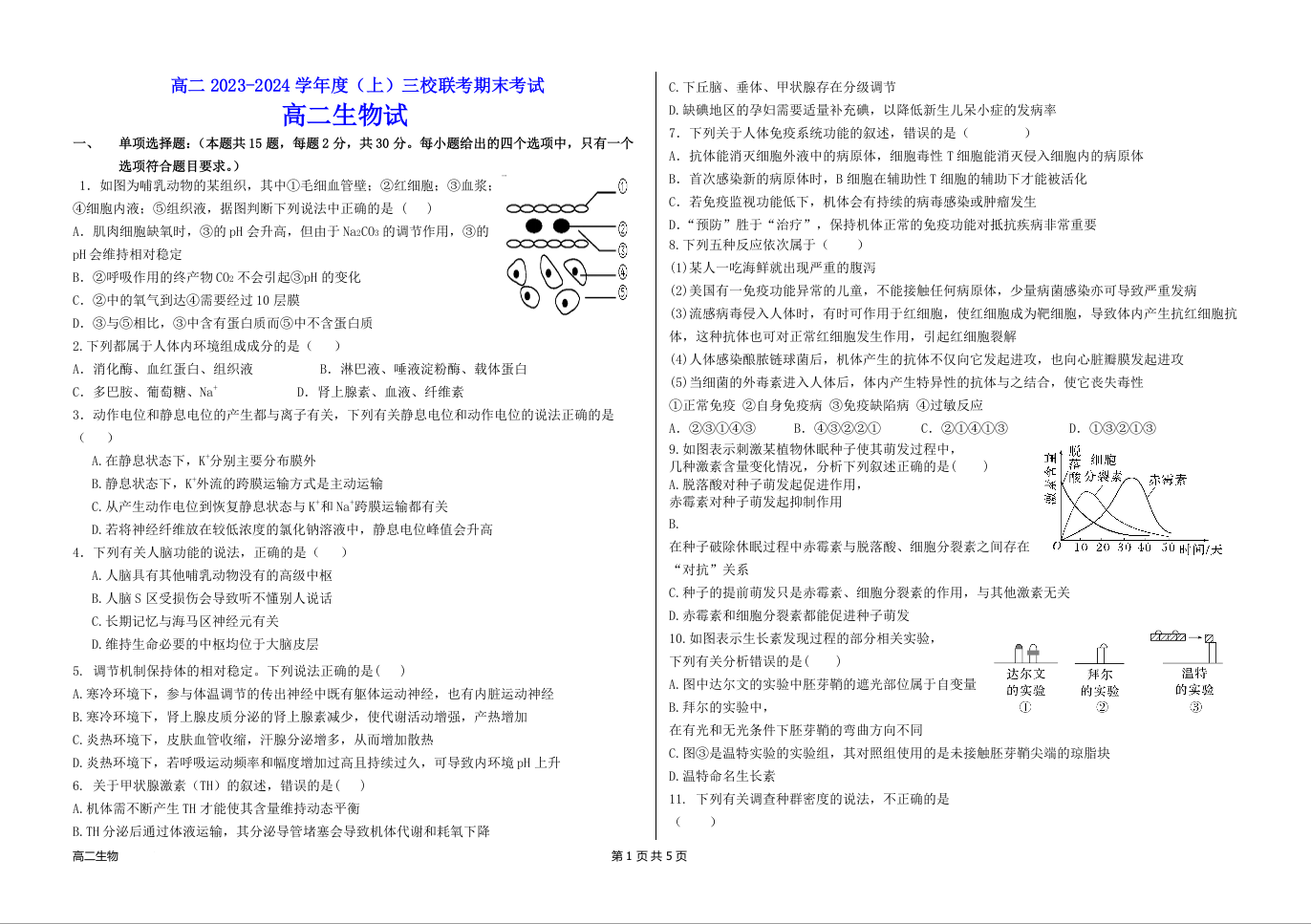 黑龙江省佳木斯市三校联考2023-2024学年上学期期末考试生物+答案