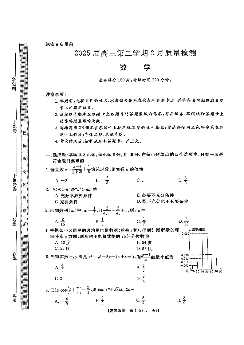 河南省金科大联考2024-2025学年下学期2月高三质量检测数学