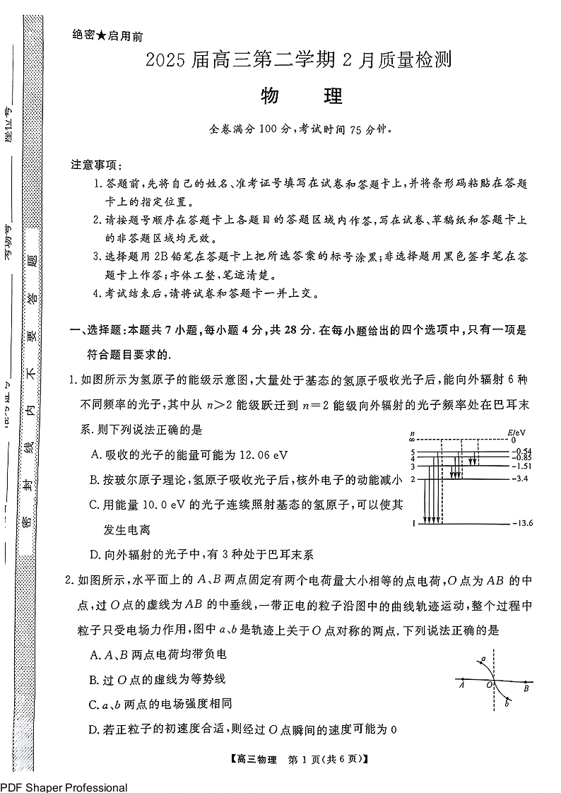 河南省金科大联考2024-2025学年下学期2月高三质量检测物理