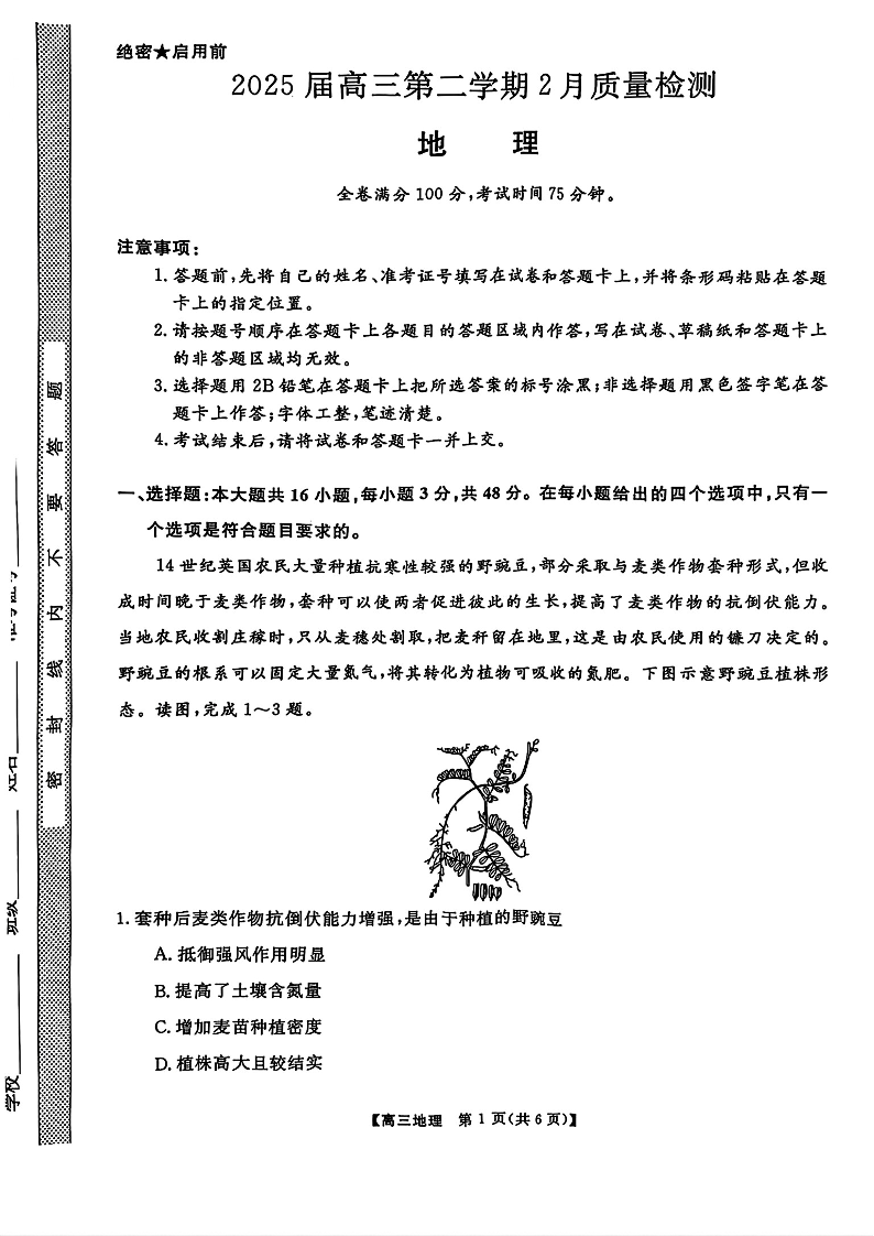 河南省金科大联考2024-2025学年下学期2月高三质量检测地理