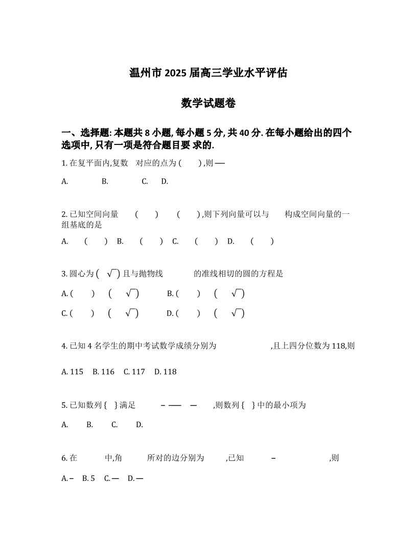 【浙江卷】浙江省温州市2024-2025学年下学期高三学业水平评估数学+答案