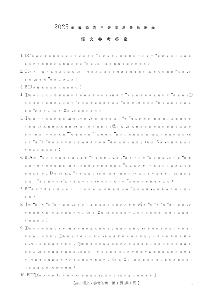 广西壮族自治区桂林市2024-2025春季高三开学质量检测语文答案
