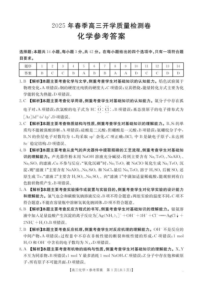 广西壮族自治区桂林市2024-2025春季高三开学质量检测化学答案