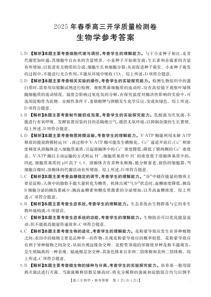 广西壮族自治区桂林市2024-2025春季高三开学质量检测生物答案