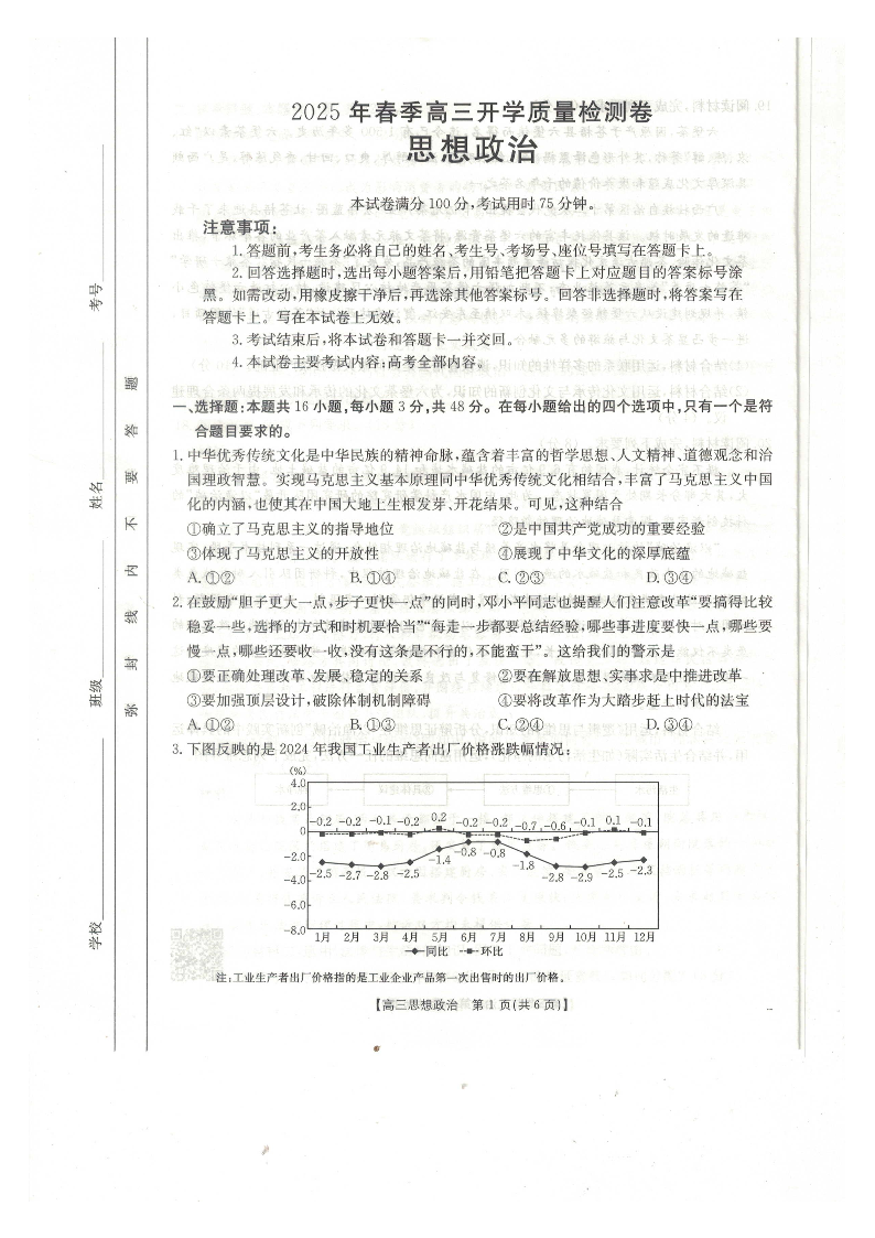 广西壮族自治区桂林市2024-2025春季高三开学质量检测政治