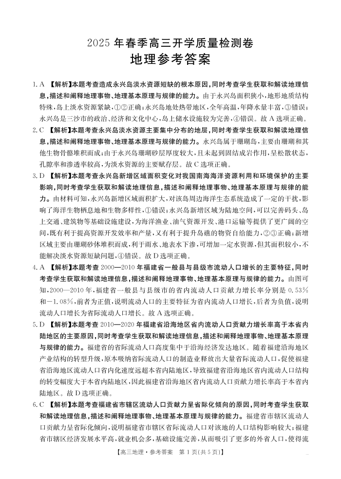 广西壮族自治区桂林市2024-2025春季高三开学质量检测地理答案