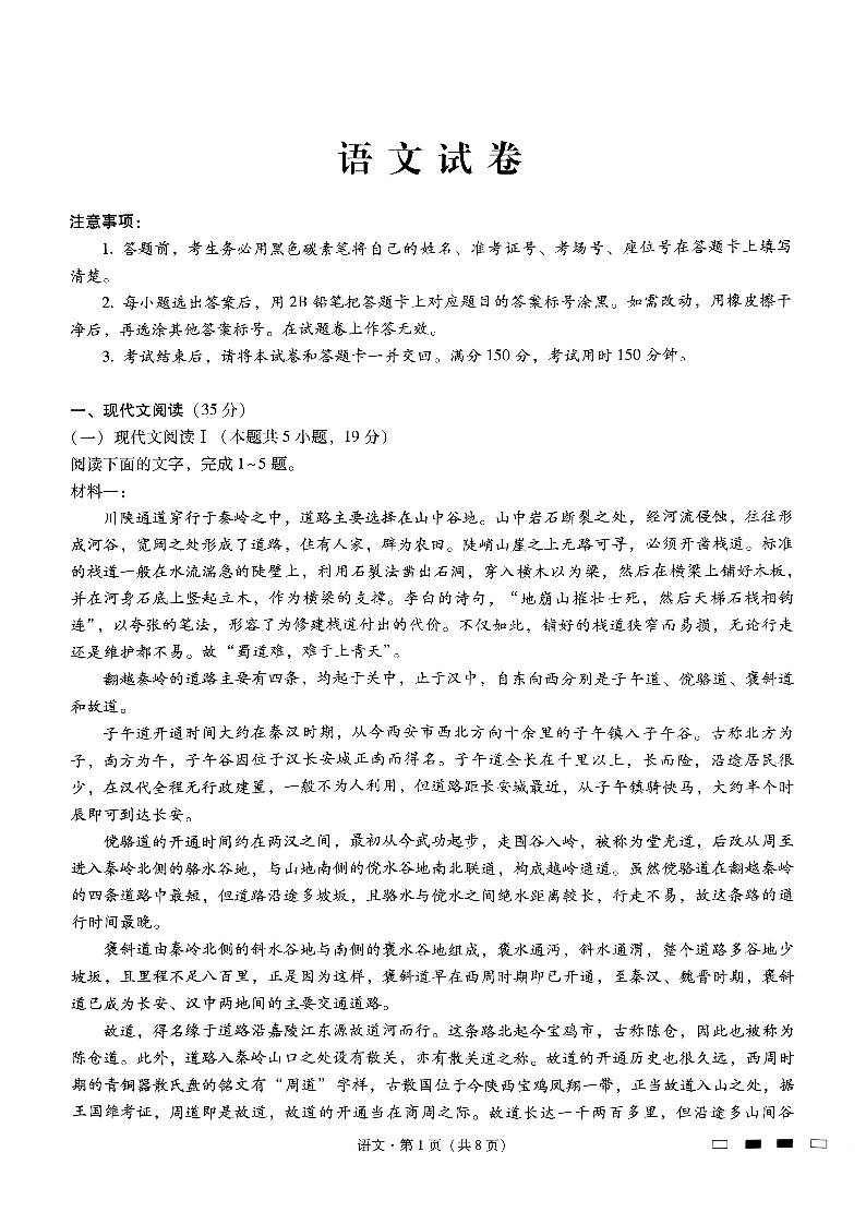重庆市巴蜀中学2024-2025学年下学期高三适应性月考卷(五)语文