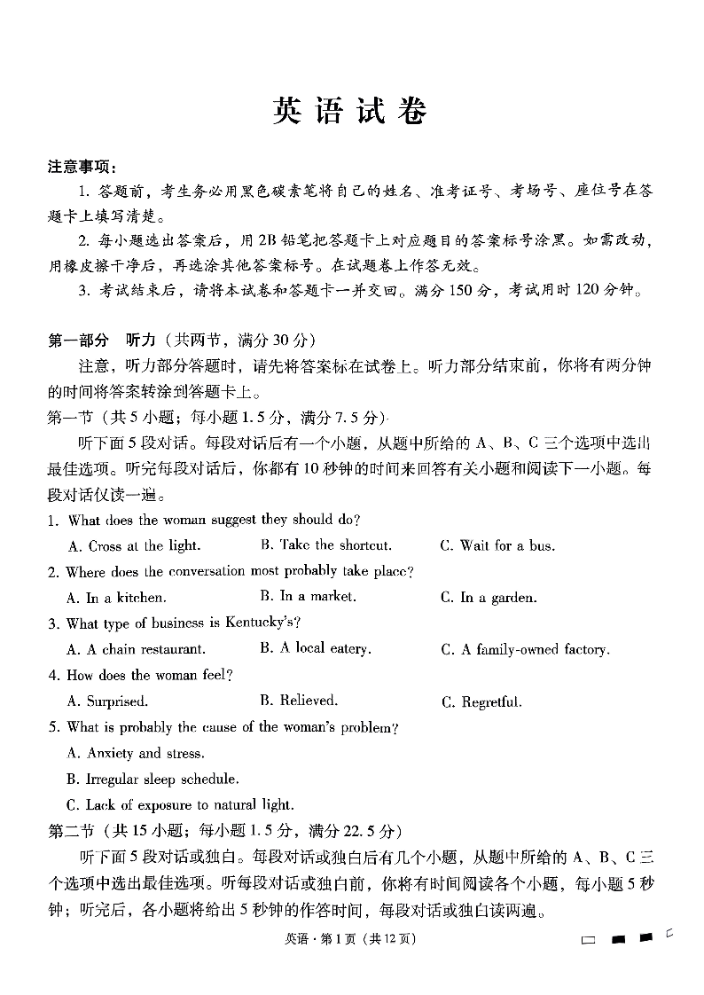 重庆市巴蜀中学2024-2025学年下学期高三适应性月考卷(五)英语