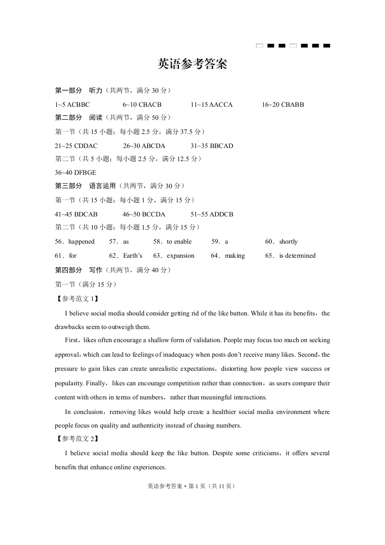 重庆市巴蜀中学2024-2025学年下学期高三适应性月考卷(五)英语答案