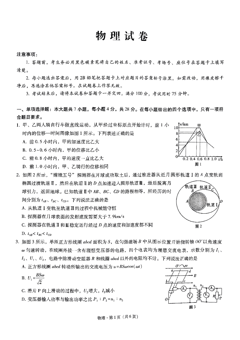 重庆市巴蜀中学2024-2025学年下学期高三适应性月考卷(五)物理