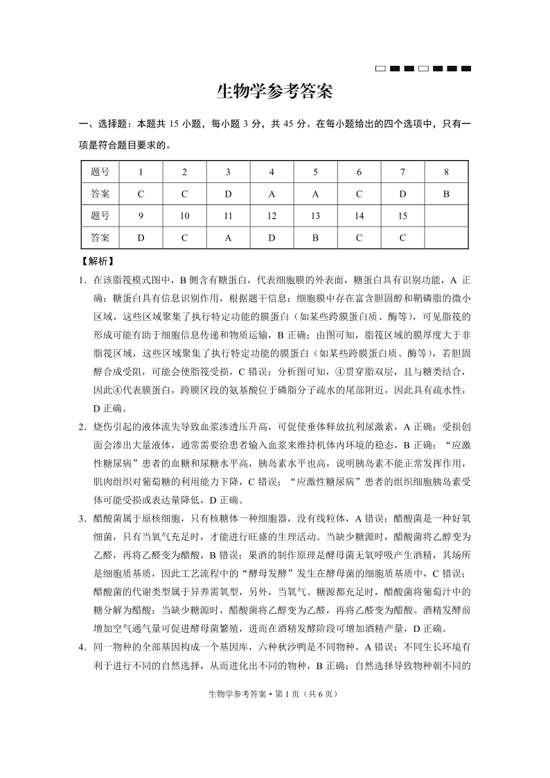 重庆市巴蜀中学2024-2025学年下学期高三适应性月考卷(五)生物答案