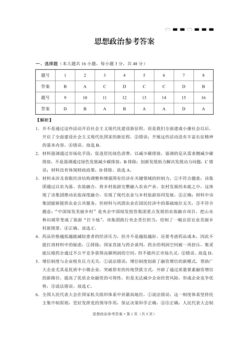 重庆市巴蜀中学2024-2025学年下学期高三适应性月考卷(五)政治答案
