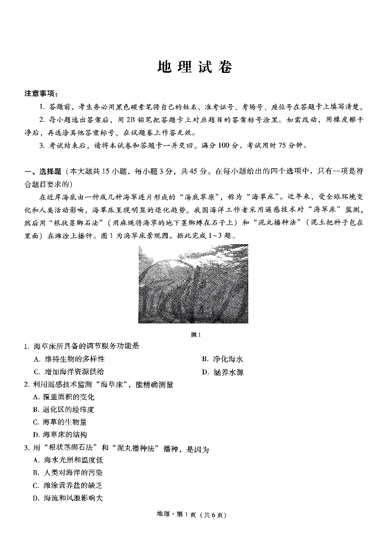 重庆市巴蜀中学2024-2025学年下学期高三适应性月考卷(五)地理
