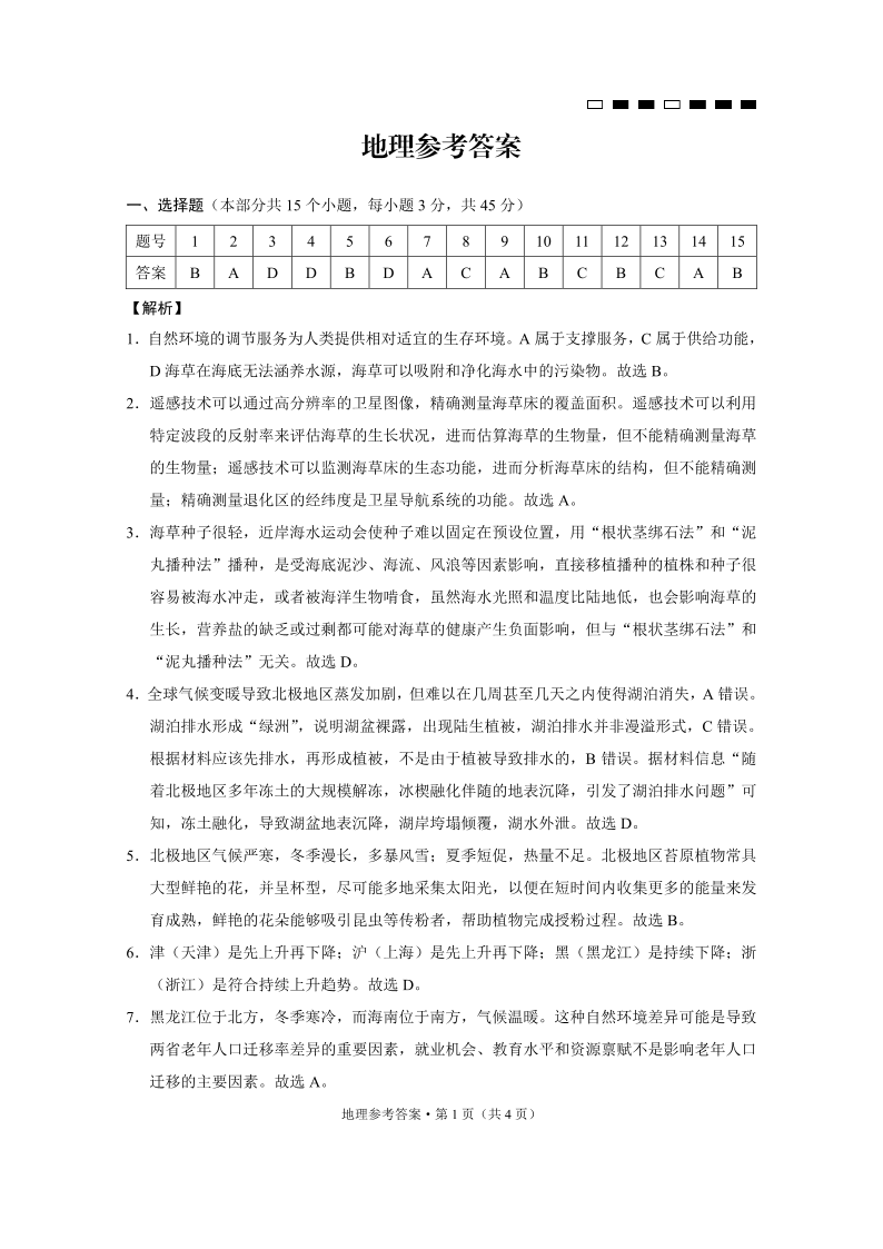 重庆市巴蜀中学2024-2025学年下学期高三适应性月考卷(五)地理答案