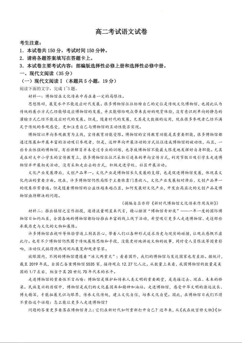 辽宁省辽阳市2023-2024学年高二上学期1月期末考试语文+答案
