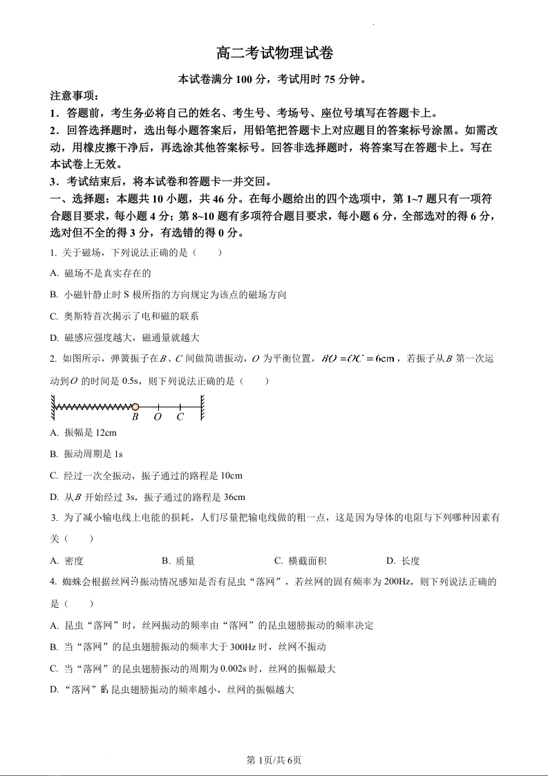 辽宁省辽阳市2023-2024学年高二上学期1月期末考试物理(原卷版)